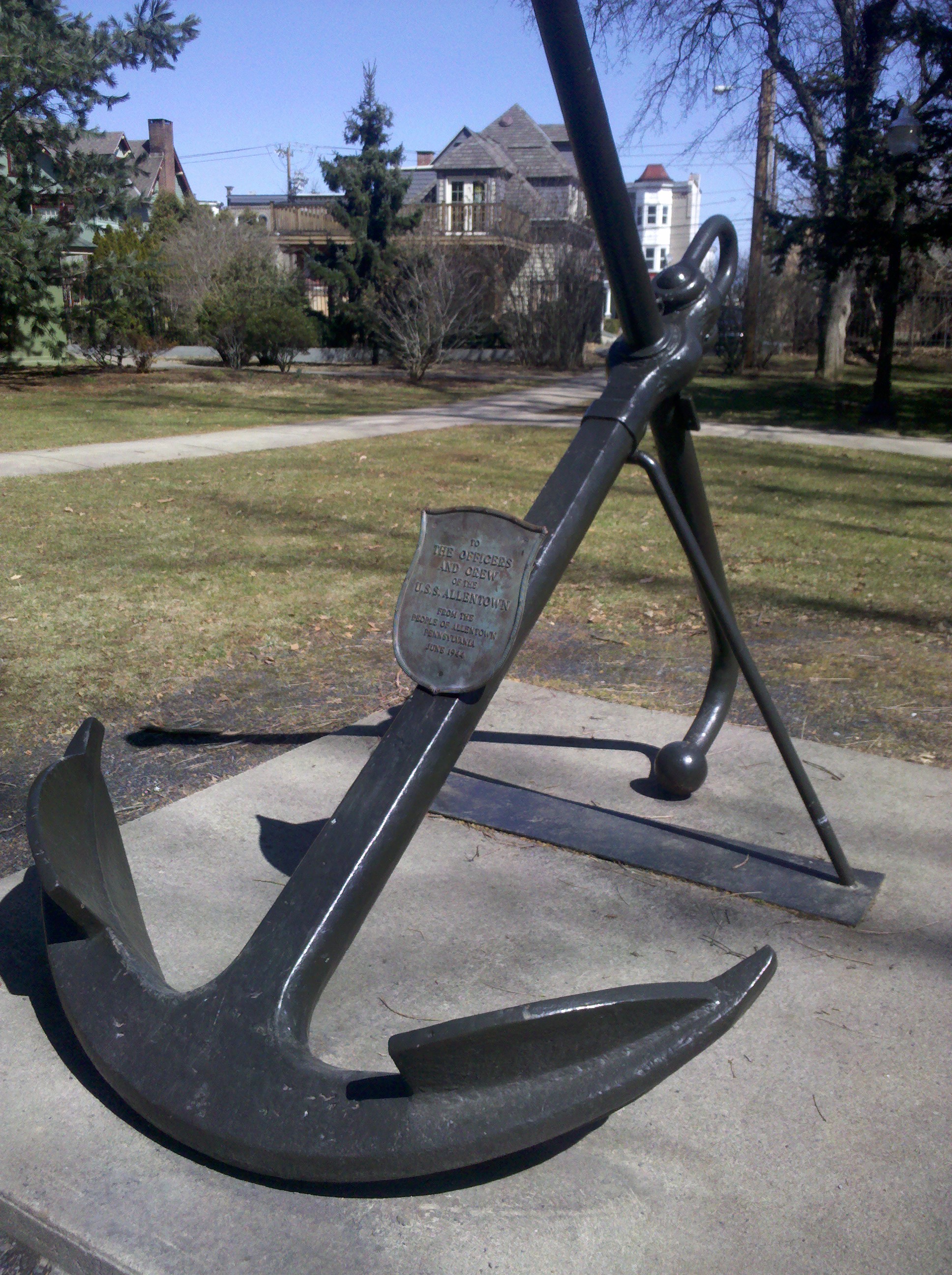 One of my favorite walking paths takes me through Allentown’s West Park, where there’s a row of war monuments, including one that stands out by its shape. It’s in the form of a ship’s anchor and reads: