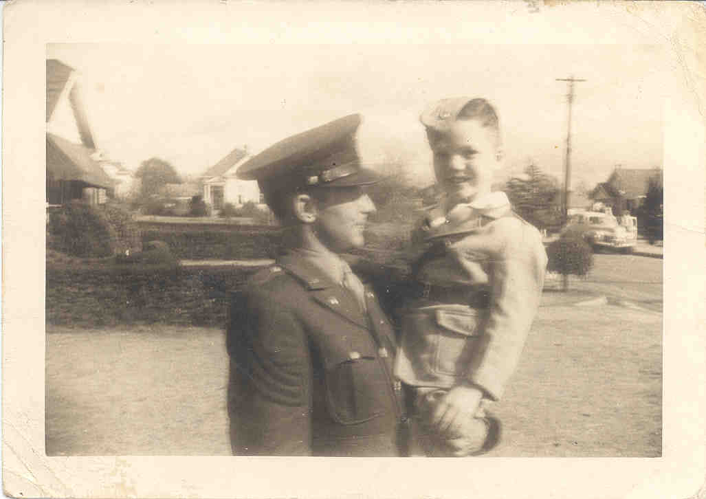 In the photo taken sometime between 1943 and 1945, Tommy Ragsdale is a toddler on the arm of an Army Air Forces flier from Allentown, Pa. The scene is Tommy’s neighborhood in Montgomery, home of Maxwell Air Force Base.