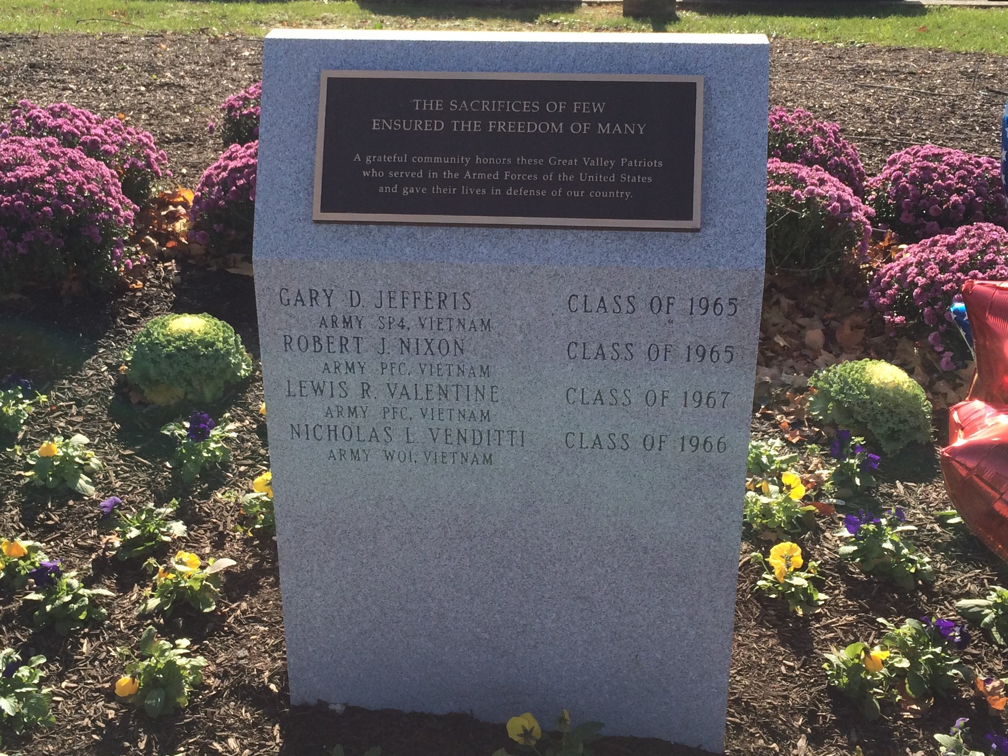 I’d like to thank the Great Valley Foundation, the Great Valley Alumni Association, the Great Valley School District and all the people who donated their time, talent and treasure to erect this fitting memorial to the men who are most worthy of recognition as elite Patriots.
