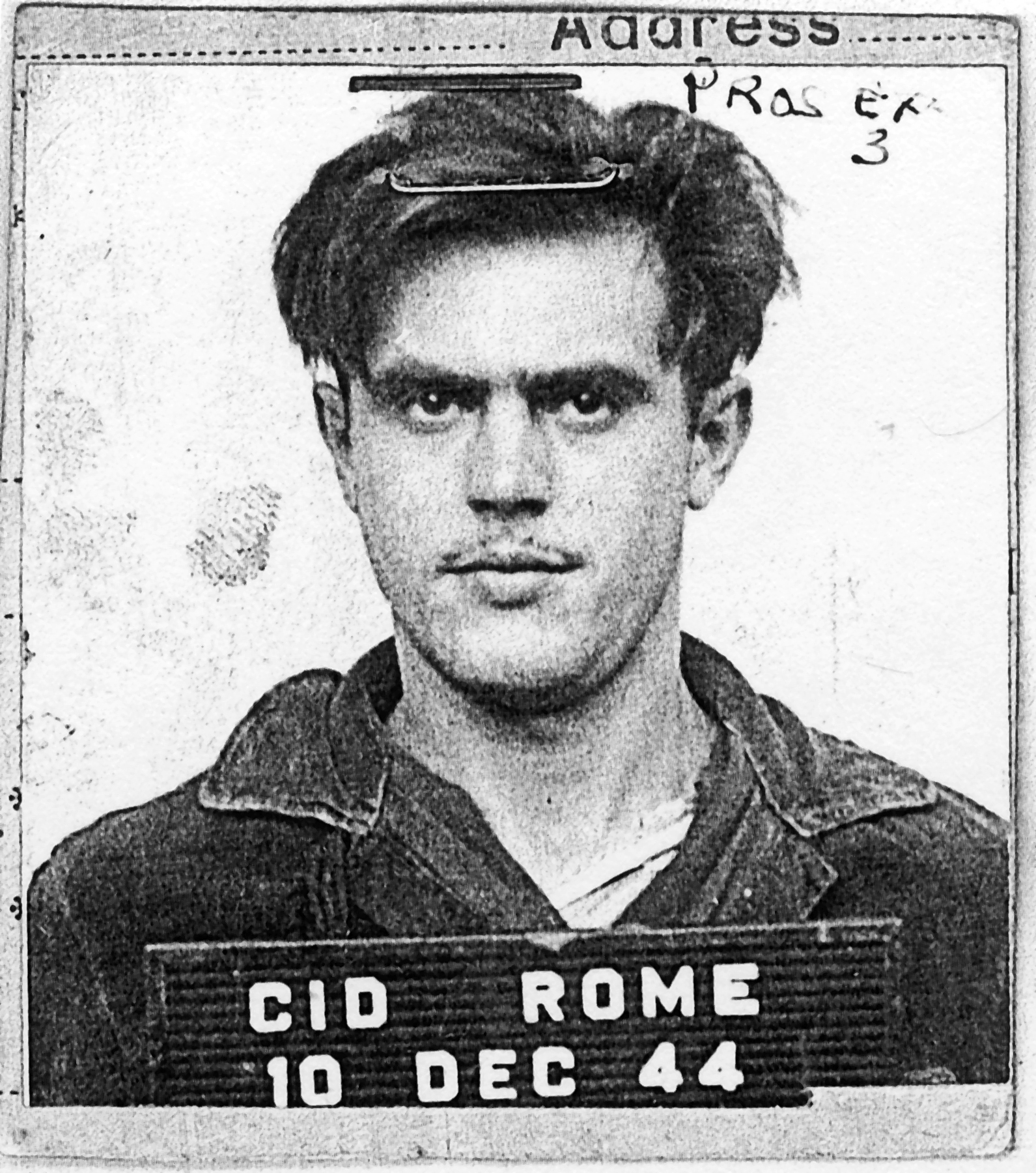 Werner E. Schmiedel of Breinigsville, Pennsylvania, is buried in Plot E at the Oise-Aisne American Cemetery in France. On June 11, 1945, he was hanged by the U.S. Army at Aversa, Italy, for murdering a civilian. The mug shot was Prosecution Exhibit 3 at Schmiedel’s court-martial.