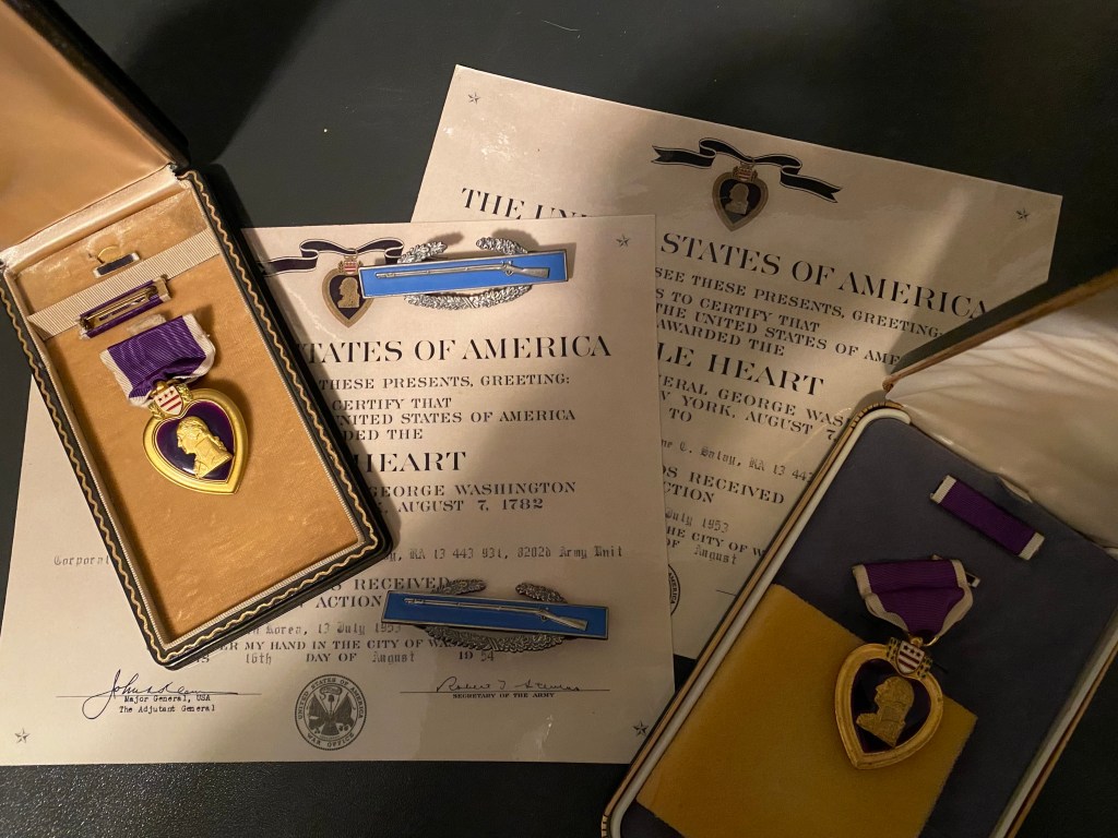 She went about cleaning out her dad’s house. A shoe box in a closet had two Purple Heart medals in display cases, two laminated Purple Heart certificates and two Combat Infantryman Badges. Both medals had Gene Salay’s name on the back. The identical certificates were for the Purple Heart he received in 1954, a year after he was wounded in the Korean War.