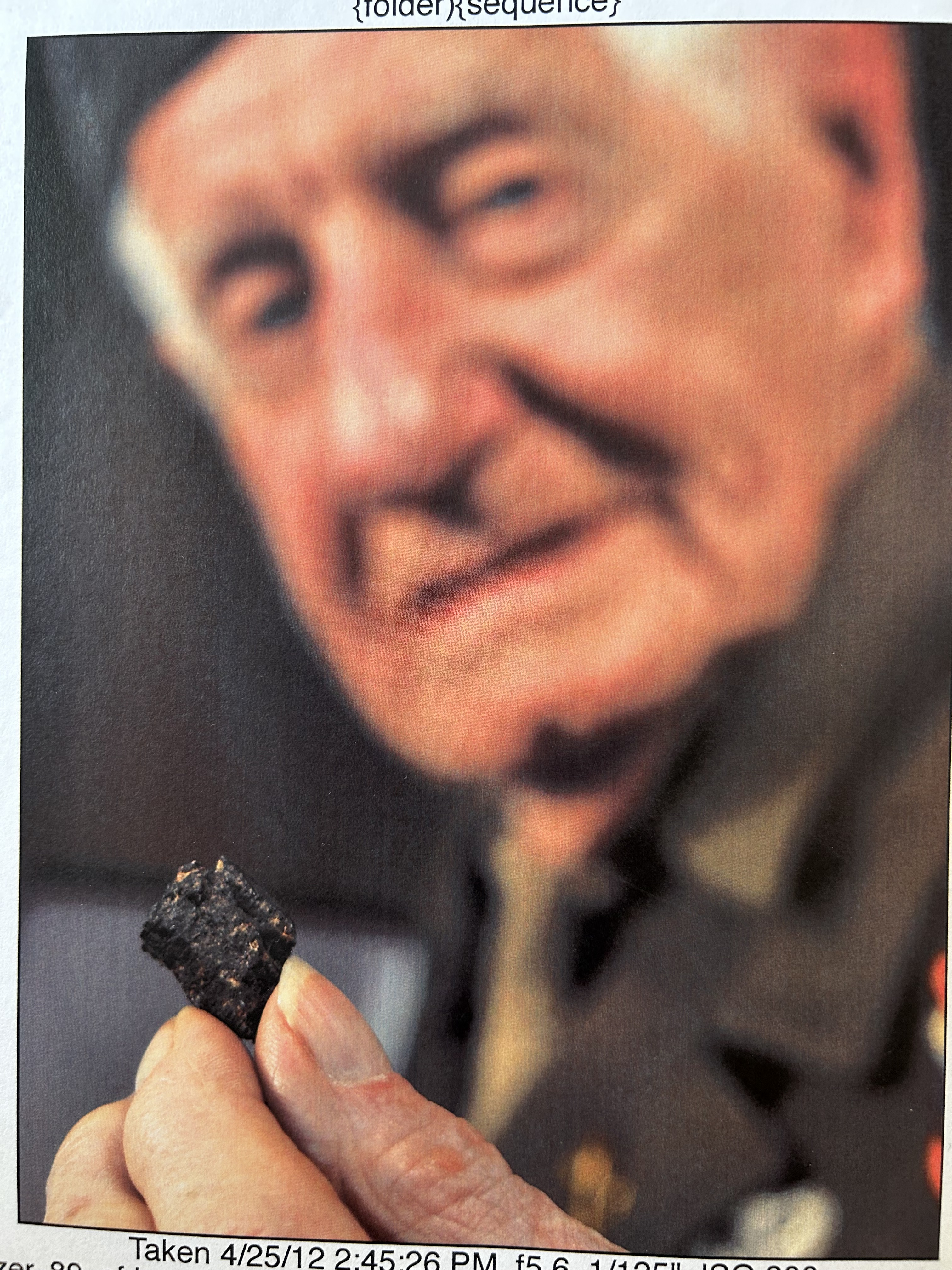 Winzer with shrapnel that was removed from his left shoulder in 1944