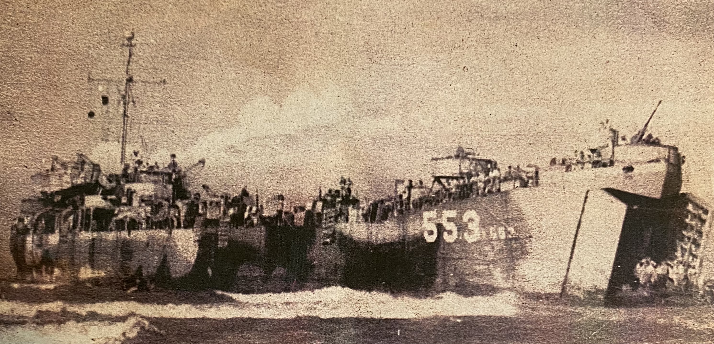 That was the main purpose of the ship that I was assigned on. It was called a landing ship, tank, an LST, and they were all numbered. They never had no names. Mine was 553. I was with it all through the war. It was camouflaged brown and green. You know why? Because when we boarded that ship in Evansville, Indiana, where it was built, we seen that ship was all in tropical colors. Tropical! We knew right then and there that ship was going to be assigned to the Pacific Theater, not European, because once that ship beaches, it blends with the foliage on that island.